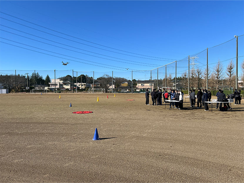 令和7年12月18日(木)、本会は、茨城県立つくばサイエンス高等学校 科学技術科 建築領域 2年生を対象に、出前授業(ドローン飛行体験会)を開催しました。