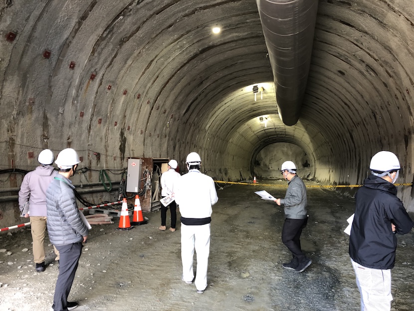見学会では、新産業廃棄物最終処分場建設工事および新最終処分場周辺道路整備事業について、事業概要や進捗状況の説明を受けたのち、埋立地、処理施設、トンネルなどの各所を見学しました。