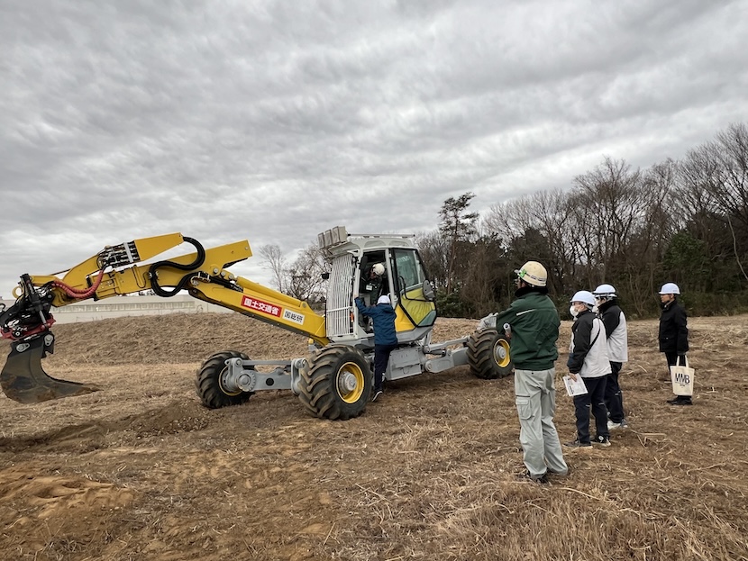 約50名の参加者は、自動追尾TSを活用した杭打ち/丁張/出来形管理やAR技術、スパイダー×チルトローテーター、リモートコントロールショベルなどを体験しました。